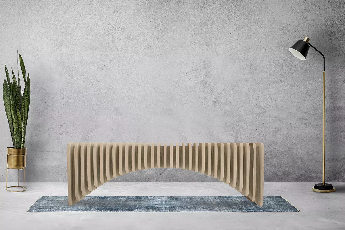 Diese wunderschöne Sitzbank besticht mit einzigartigen Kurven, parallelen Lamellen und ausgesprochen modernen Stil! Die meisterhafte Verarbeitung aus 21mm Multiplex verleiht dieser Bank einen individuellen Charakter.