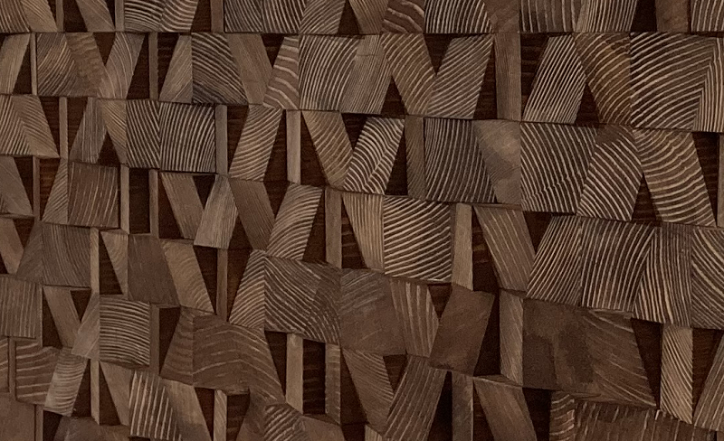 Erlebe die faszinierende Kombination aus Handwerkskunst und natürlicher Schönheit mit unserem einzigartigen 3D-Holzbild. Dieses Kunstwerk besteht aus zahlreichen präzise gefrästen Holzblöcken, die in einem rhythmischen Muster angeordnet sind und ein faszinierendes Spiel von Licht und Schatten erzeugen.