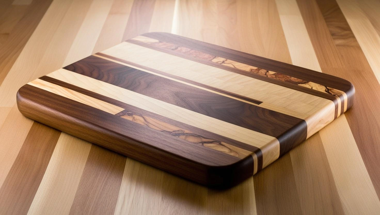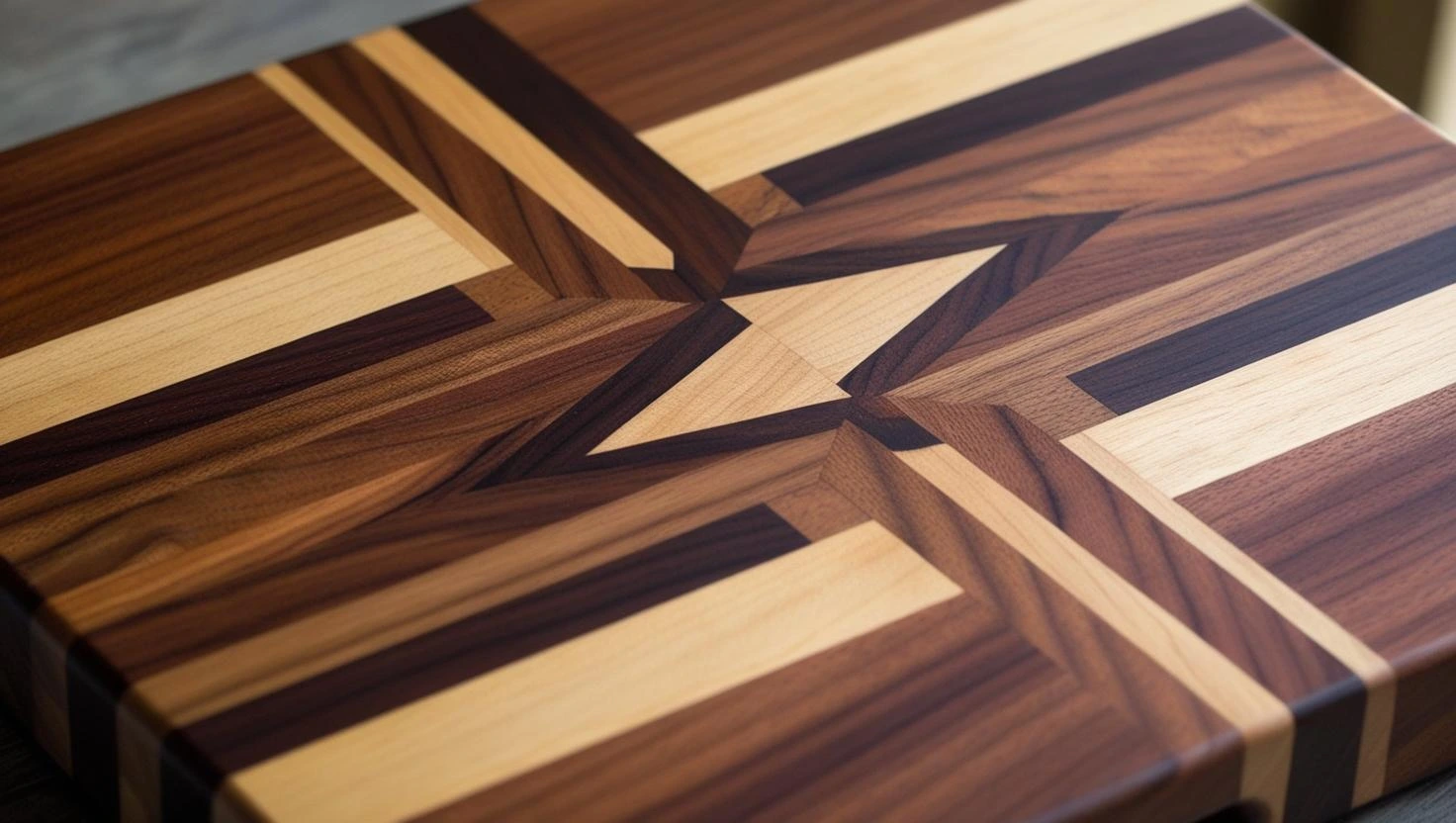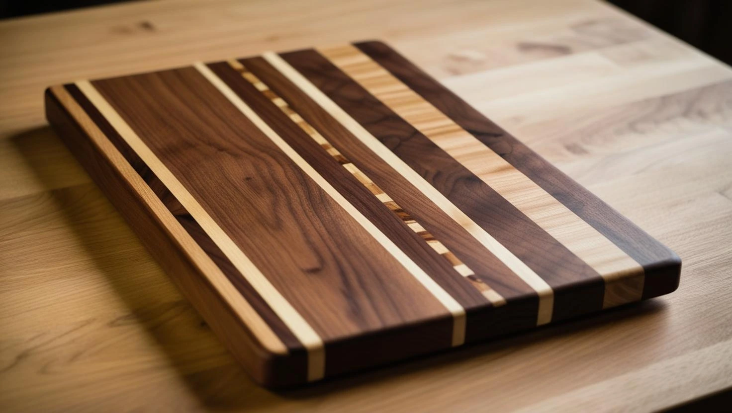 Hochwertige Nussbaum-Schneidebretter mit edler Intarsienarbeit.
